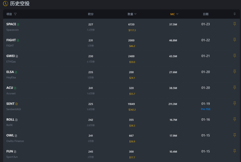 Ostatnio airdrop alpha można powiedzieć, że nie był ani gorący, ani zimny, jednakże token airdropowany 23 stycznia, $SPACE był prawdziwą perełką, a wartość airdropu osiągnęła 117 dolarów.