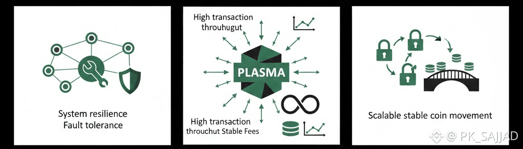 The hard part is making sure stable coins can move easily from one system to another. Banks and other financial institutions need to know how much transactions will cost and they need things to work the way every time. They also need to know that the system will keep working even if something goes wrong. Plasma is trying to solve these problems by making sure that a lot of transactions can happen at the time and that the fees for these transactions do not change too much. Stable coins are very important, in this process. Stable coins need to be able to move across systems at scale. This is what Plasma is trying to achieve with coins.