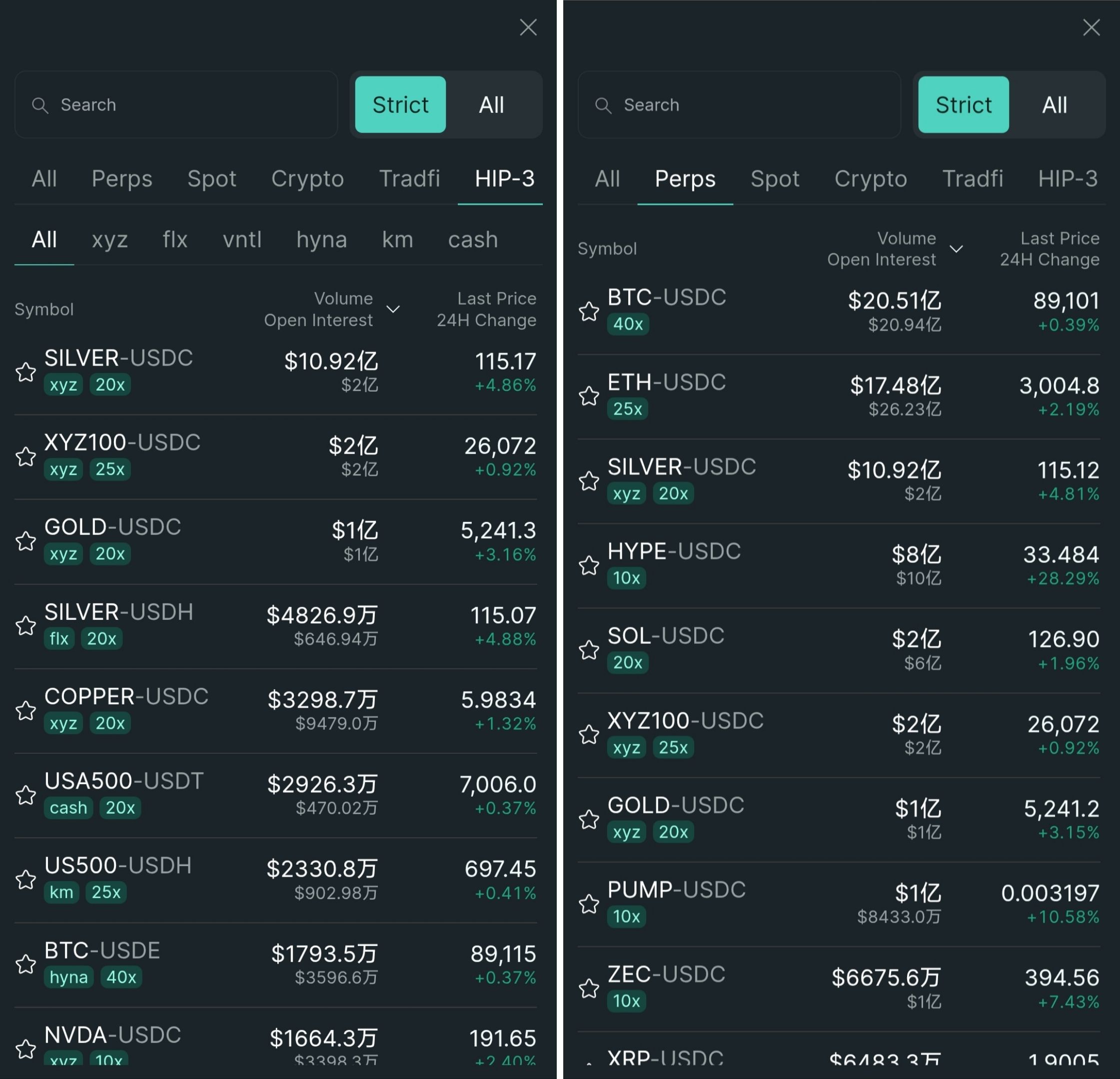 市场不禁要问:究竟是什么力量,在加密市场整体疲软的背景下,驱动Hype如此凶猛?答案出人意料——不是比特币、以太坊或Solana等加密原生资产,而是黄金、白银、铜等传统商品合约。