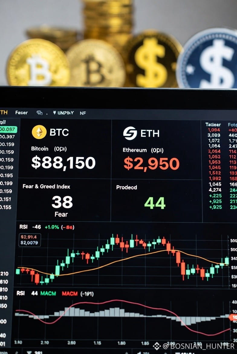 The crypto market is showing clear signs of consolidation and caution today, January 29, 2026, with the total market cap sitting at around $2.98T–$3.00T, down about 1.08% in the last 24 hours. Bitcoin (BTC) is trading near $88,150–$88,500, reflecting a modest dip of roughly 1% amid subdued trading volume and broader risk-off sentiment. Ethereum (ETH) hovers around $2,950–$2,955, also down slightly.