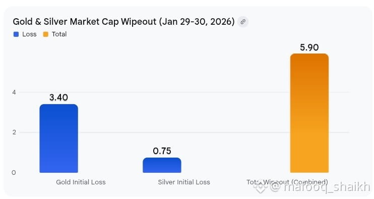 Silver: Experienced a sharper decline of nearly 12%, falling from record highs above $121/oz to approximately $107/oz.