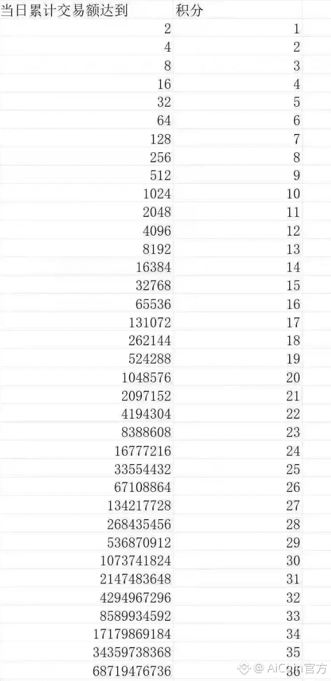 简单说就是 “余额越多、交易越多,积分越高”。给大家算笔账:每天保持 1000U 以上余额,刷 32768 交易量,就能拿 2 分余额分 + 15 分交易分,每天 17 分,250 分目标两周就能完成,连续刷 15 天就行