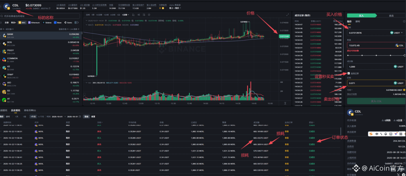 选标的可是刷分的关键,记住这几点:下跌趋势千万别碰!越刷越亏,纯纯送手续费,咱们又不是来当 “接盘侠” 的。最理想的是价格稳定的时候,10U 买、10U 卖,只亏点手续费就行 —— 很多朋友刷了一个月就停了,错过了好多值钱的空投,太可惜了!