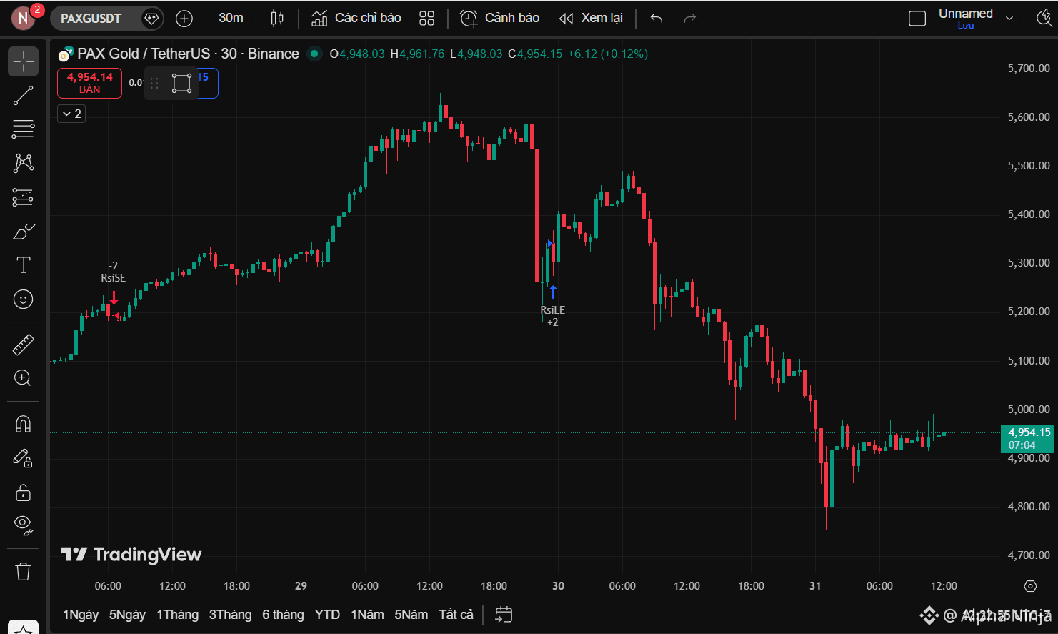 Nhìn bề ngoài, PAXG trông như vừa bị đạp gãy. Nhưng cấu trúc sau đó lại rất sạch. Không lower low mới, không breakdown tiếp. Đây không phải hành vi của tài sản bị bỏ rơi.