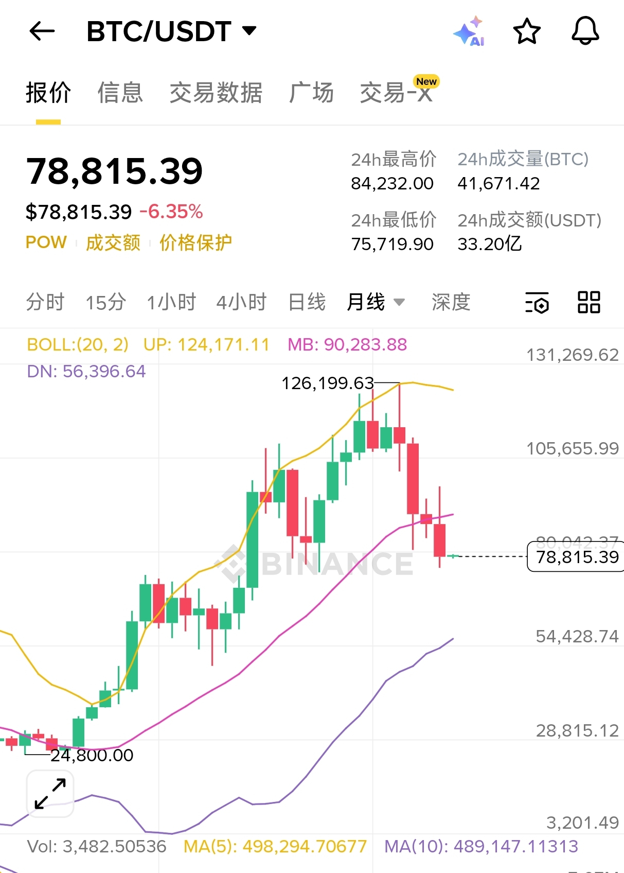 直接看月线布林带,以下轨为界限,外部流动性充裕兜底,猜测在5-6万。