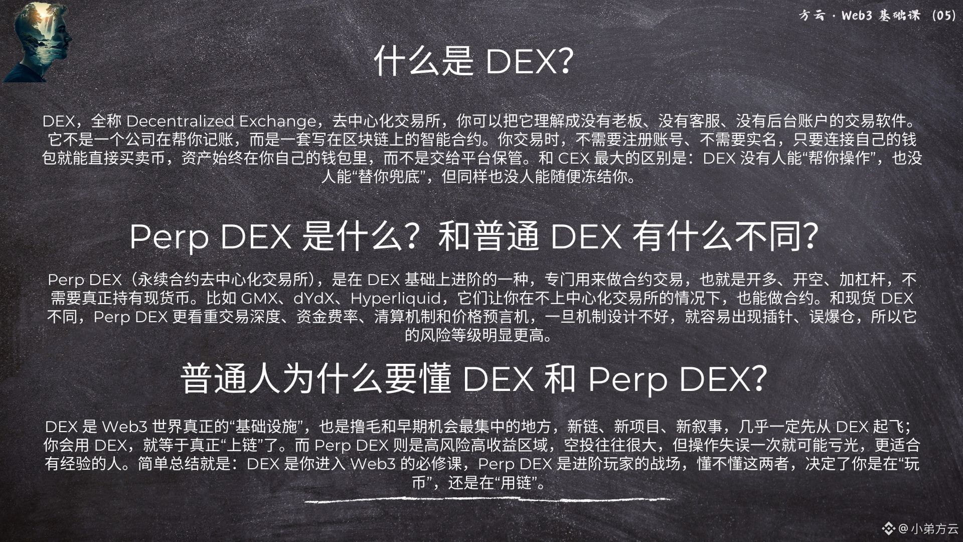 DEX 是 Web3 世界真正的“基础设施”,也是撸毛和早期机会最集中的地方,新链、新项目、新叙事,几乎一定先从 DEX 起飞;你会用 DEX,就等于真正“上链”了。而 Perp DEX 则是高风险高收益区域,空投往往很大,但操作失误一次就可能亏光,更适合有经验的人。简单总结就是:DEX 是你进入 Web3 的必修课,Perp DEX 是进阶玩家的战场,懂不懂这两者,决定了你是在“玩币”,还是在“用链”。