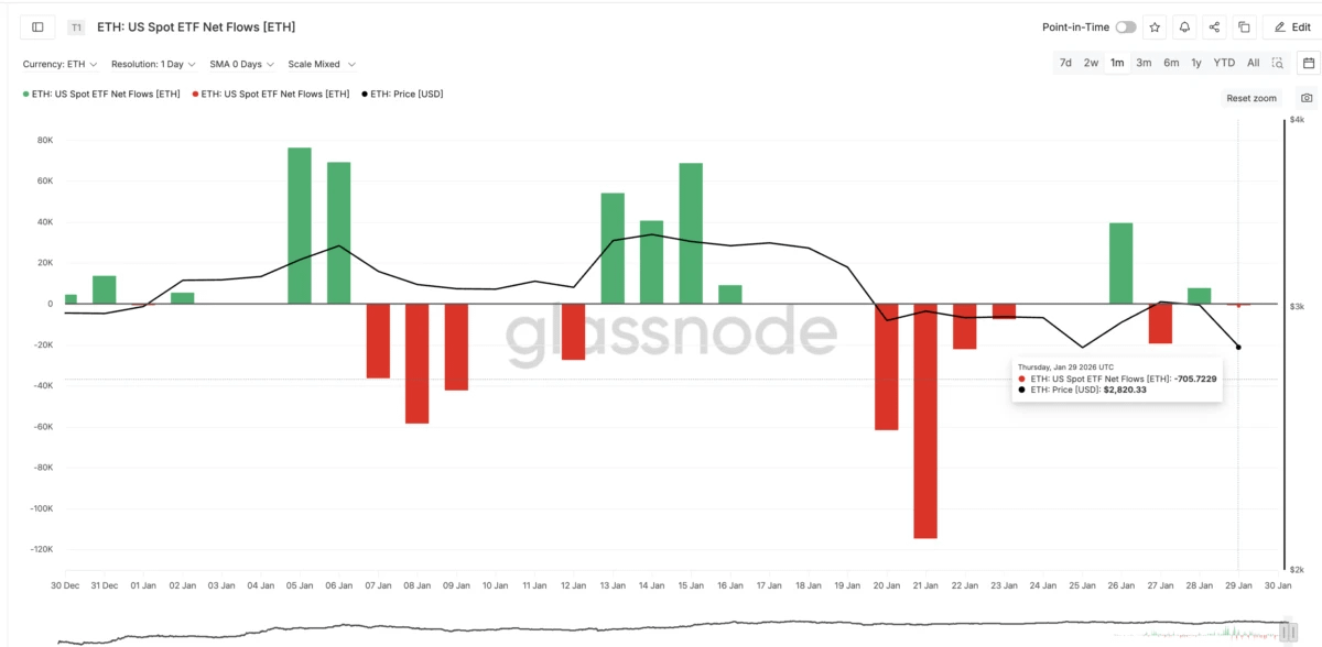 Sytuacja kontrastuje z lutym 2025 roku, kiedy to duzi posiadacze aktywnie sprzedawali monety. W bieżącym roku obserwuje się odwrotny proces, co wspiera scenariusz odbicia. Jednak statystyki dotyczące spotowych ETF pozostają niestabilne. Po okresach napływu kapitału często następują duże wypłaty środków, przekraczające 70 000 ETH.