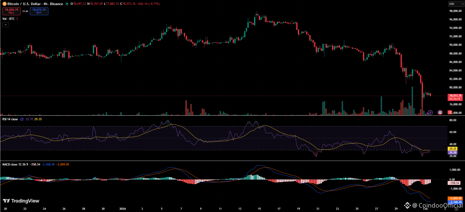 Bitcoin extended its recent sell-off this week, briefly plunging to the $78,000 area and marking one of the sharpest short-term declines of the current cycle.
