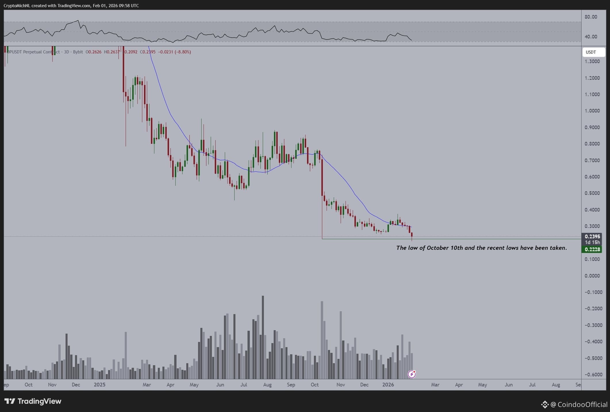 A similar, though slightly more optimistic, view comes from Michaël van de Poppe, who believes the broader crypto market may be transitioning out of capitulation and into an early accumulation phase. He notes that many altcoins have already swept their October 10 lows, taking liquidity beneath recent support levels.