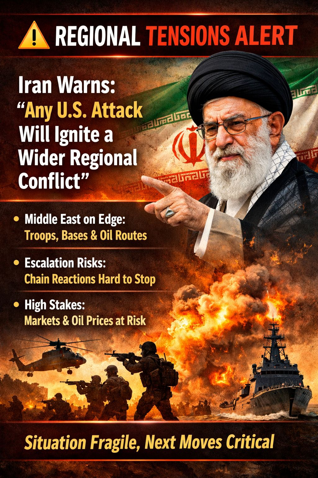 Przywódca Najwyższy Iranu ostrzegł, że jakiekolwiek działania wojskowe USA nie pozostaną ograniczone i mogą przerodzić się w szerszy konflikt regionalny. Bliski Wschód jest już bardzo wrażliwy - pełen baz wojskowych, sojuszników i kluczowych szlaków naftowych - nawet niewielka eskalacja może wywołać reakcje łańcuchowe, które są trudne do zatrzymania.