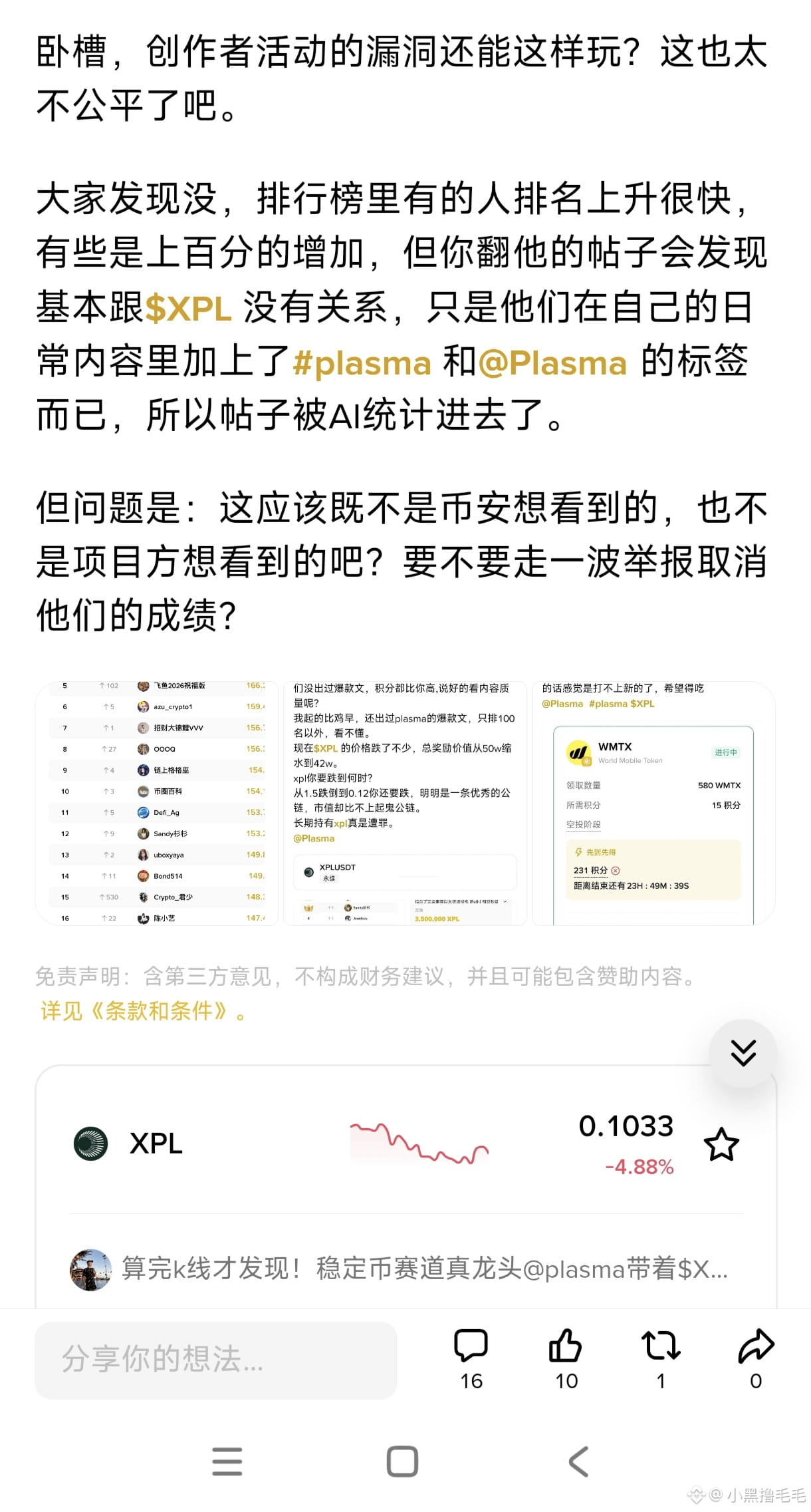 大家可以打开这些大V发的关于@Plasma 的文章,除了流量高,评论点赞没几个,内容也几乎都是ai文,但是他们一天可以加四五十分甚至百分。