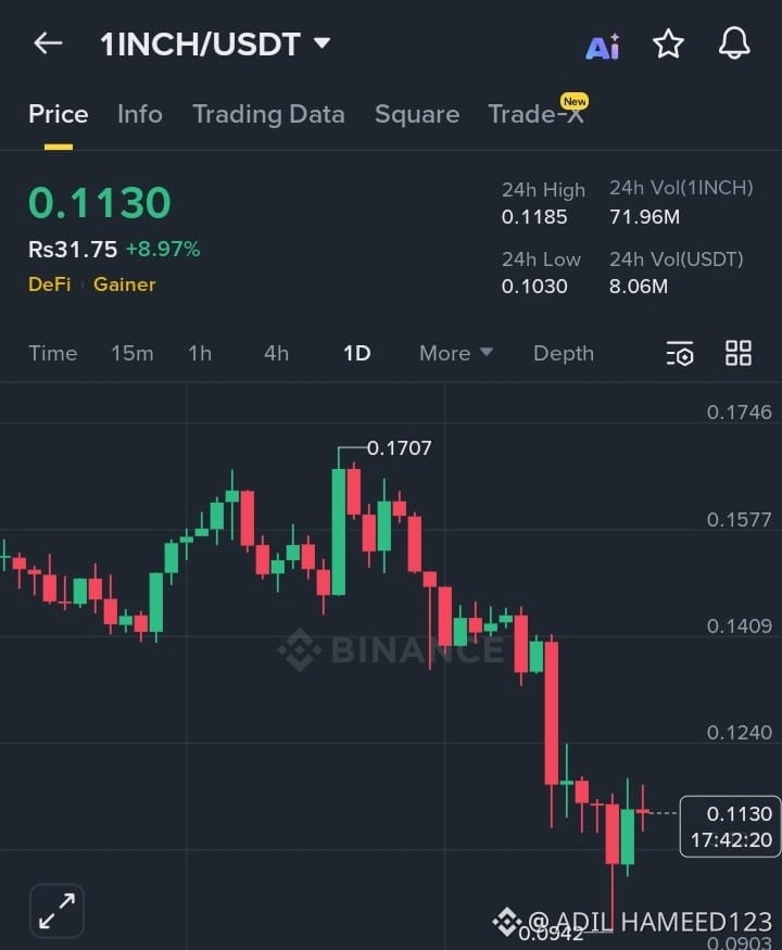 As seen in your screenshot, $BNB $1INCH recently touched a low of $0.0942. On-chain data and technical indicators (like the RSI) showed the token was deep in "oversold" territory.
