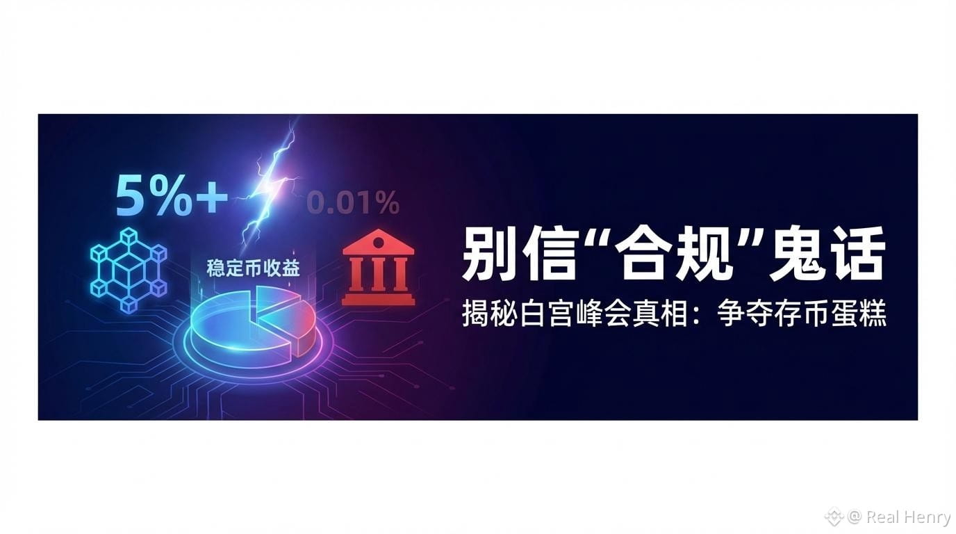 别被那些高大上的名词忽悠了。这事的本质特别简单:银行急眼了。你想想,如果 Coinbase 或者哪个链上协议能合法给用户的 $USDC 提供5%的活期收益,谁还会把钱存在摩根大通拿那 0.01% 的利息?这就是动了传统银行最核心的“存款”奶酪。