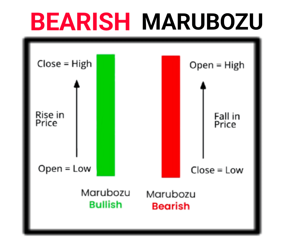 Otwarte cena świecy Bearish Marubozu jest wyższa, a zamknięcie niższe. Idealna świeca Bearish Marubozu nie ma górnego ani dolnego cienia. Oznacza to, że najwyższy punkt to miejsce, w którym się otwiera, a najniższy punkt to miejsce, w którym się zamyka. Jednak nawet jeśli są jakieś górne i dolne cienie, nadal nazywa się to świecą Marubozu.