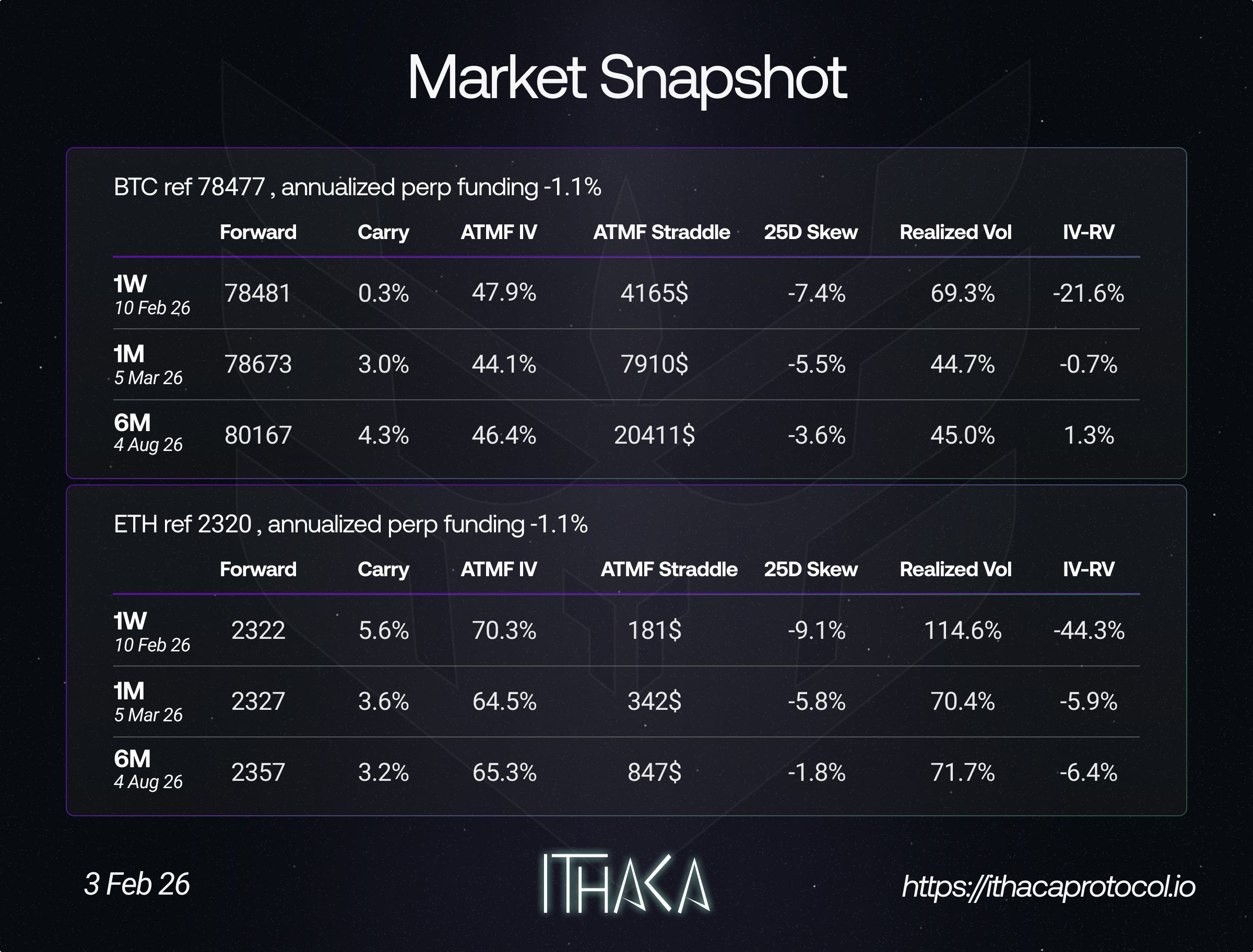 $ETH pokazuje głębszy stres. Negatywne finansowanie, ekstremalna krótkoterminowa zrealizowana zmienność i bardzo silny spadek punktów wskazują na wymuszone zabezpieczanie i przepływy kapitulacyjne, które nadal mają miejsce.