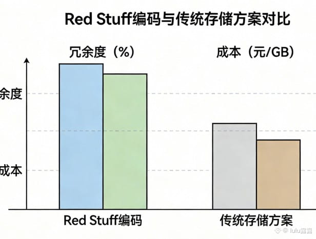 传统去中心化存储比如Filecoin、Arweave,要么是多副本全量存储,冗余度高到离谱,成本居高不下;要么是一维纠删码,恢复数据慢,还不支持动态修改。Walrus的核心突破是Red Stuff二维纠删码算法,我给大家算笔直观的账: