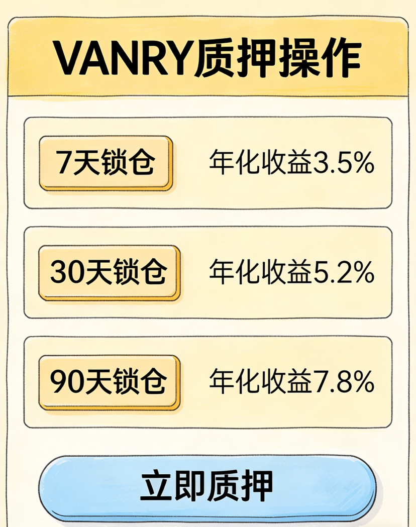 质押是咱们持VANRY最实在的获利方式,我自己掏了1200枚测了三个月,踩过小坑也摸透了门道。Vanar用的是dPoS+声誉证明混合质押,跟以太、BSC的玩法不太一样: