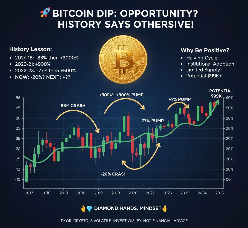 Hej Bracie, wiem, że wielu z was czuje się nerwowo, obserwując rynek ostatnio, prawda? Bitcoin spadł z $82k i teraz krąży wokół $64k. Wiele osób panikuje i sprzedaje, ale poczekaj chwilę! Jeśli spojrzysz na całą podróż Bitcoina, ten moment jest w rzeczywistości okazją, a nie powodem do paniki. $BTC