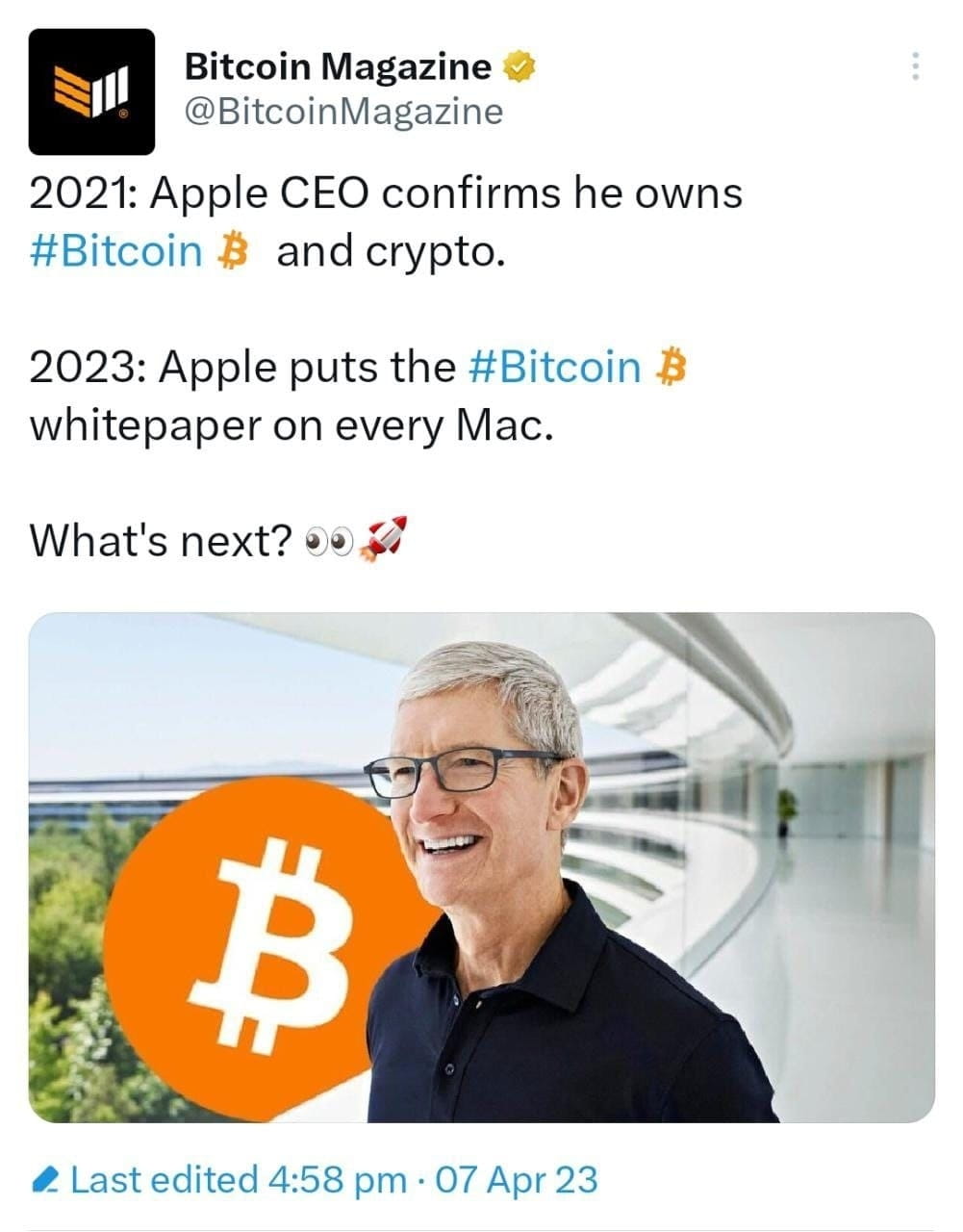 Tim Cook, dyrektor generalny Apple, wiodącego na świecie producenta telefonów komórkowych i komputerów, ogłosił wcześniej, że kupił Crypto.