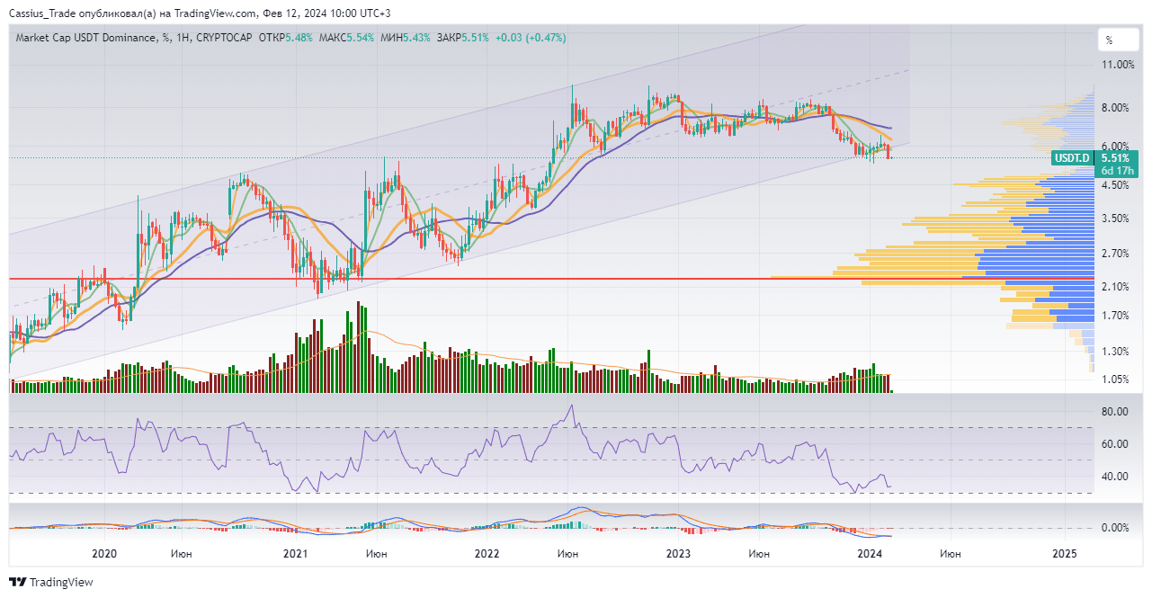 Przyjaciele, chcielibyśmy pogratulować Wam ważnego wydarzenia - pełnego przebicia w dół 6-letniego kanału wzrostowego dominacji USDT w ujęciu tygodniowym! 🎉