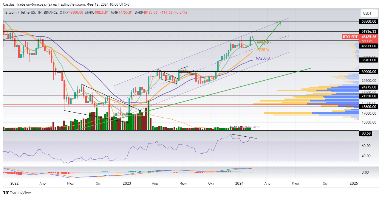 W tej chwili granica ta oscyluje w okolicach 51 900 dolarów, z czego logicznie rzecz biorąc, po niewielkiej korekcie pójdzie do około 42 600 dolarów, a jeśli pojawią się negatywne wieści, cena może w tej chwili spaść do 39 400 dolarów .