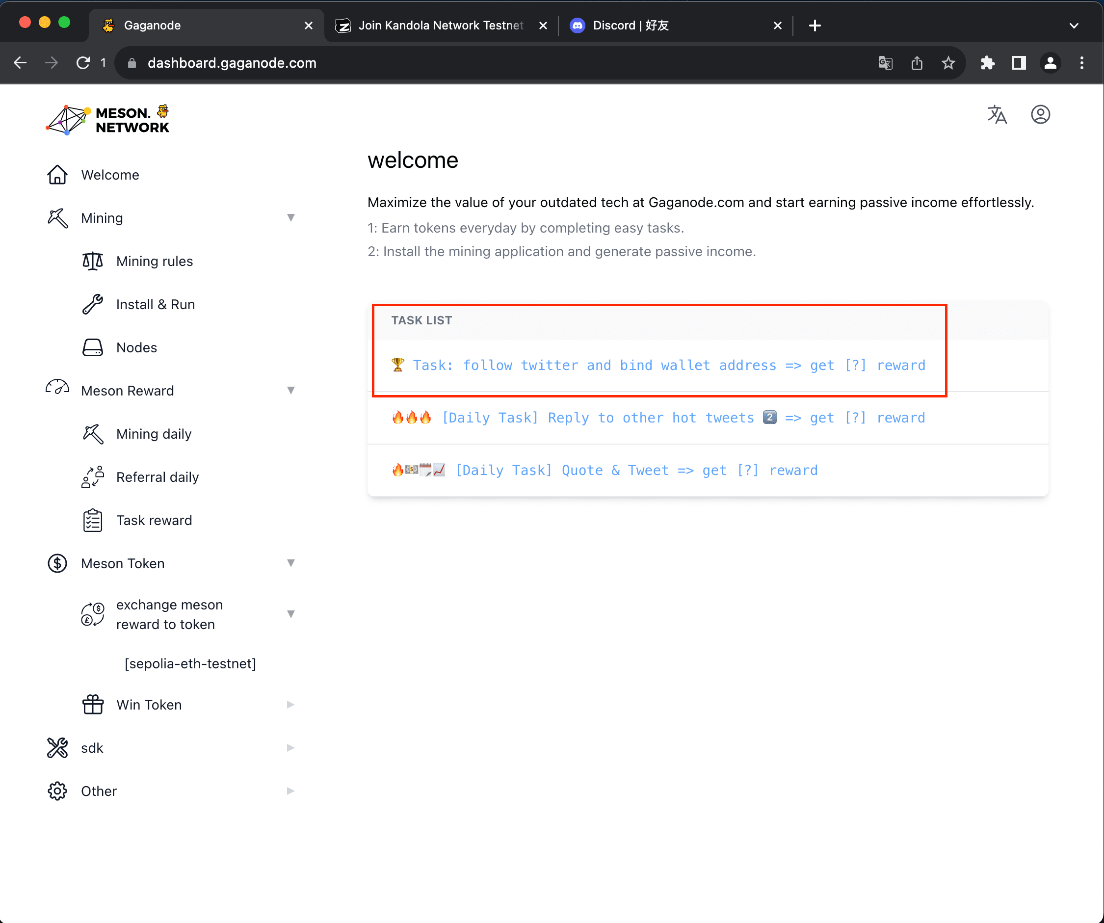 2. Kliknij pierwszy powiązany portfel. Pozostałe dwa linki poniżej to codzienne zadania X. Możesz wracać codziennie, aby losować punkty.
