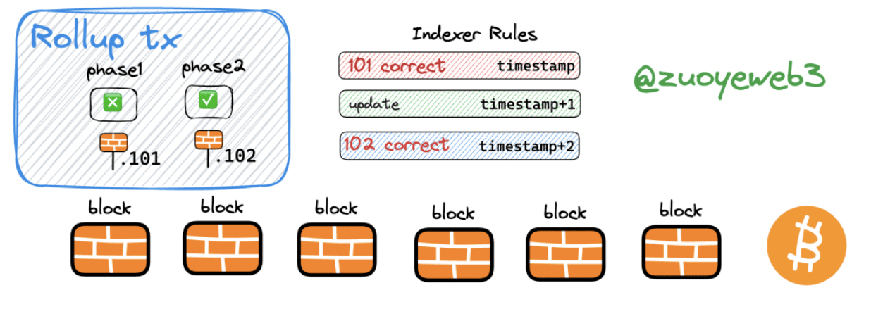 Mechanizm zapisu może odgrywać większą rolę w mechanizmie handlowym. W przypadku ETH Rollup, gdy dowód oszustwa zostanie zakwestionowany i zaakceptowany przez Ethereum, sieć główna skonfiskuje zastawione aktywa zgłaszającego. Ale w przypadku BTC Rollup to cięcie musi zostać wykonane poza łańcuchem. Ponieważ raz napisany skrypt Bitcoin nie może być już zmieniony. Aktualizacje można zakończyć jedynie poprzez kontynuację zapisywania informacji w nowych blokach, to znaczy tylko Aktualizuj, a nie Nadpisz.