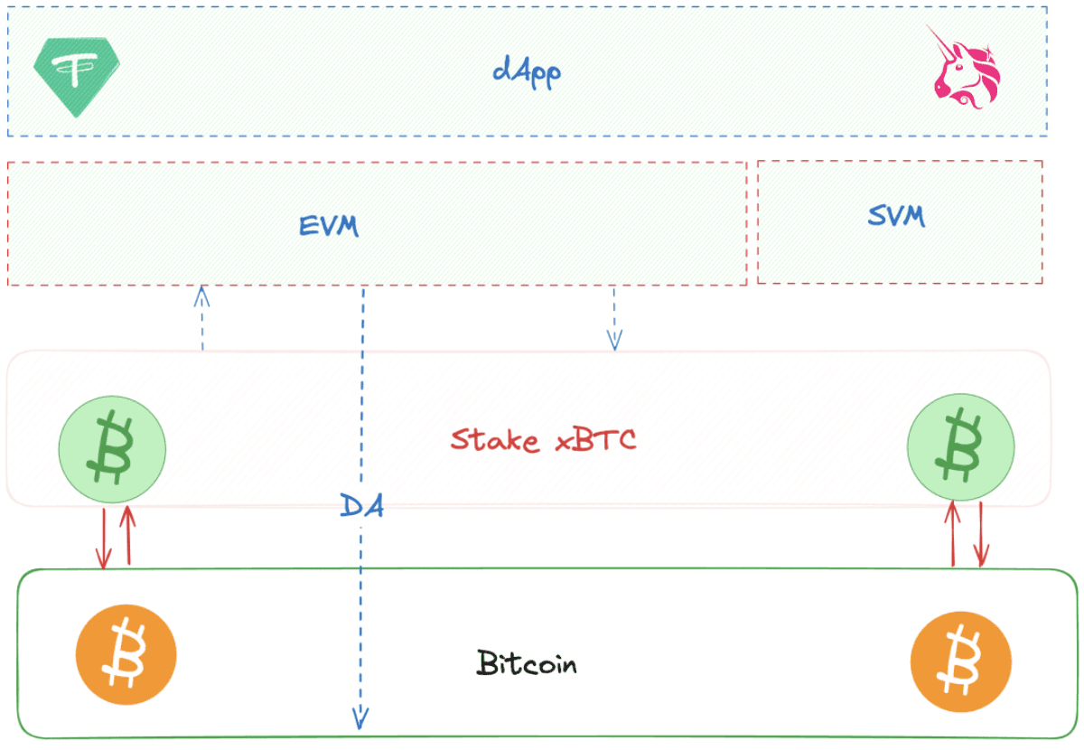 BTC buduje system PoS w celu zapewnienia bezpieczeństwa i wykorzystuje mechanizm dostępu i niszczenia bez uprawnień, który różni się od istniejącego systemu opartego na aktywach. Dochód z darowizny BTC będzie w pełni obliczany w BTC, a tokeny projektu nie mogą powodować konfliktów funkcjonalnych z BTC. Warstwa obliczeniowa typu Rollup musi spełniać wymagania zarówno dotyczące dużej skali, jak i prywatności, a także wykorzystuje technologię szyfrowania w celu zwalczania tendencji centralizacyjnych. Rollup nie może budować dodatkowych warstw DA i wyłącznie wykorzystuje Bitcoin jako rozwiązanie DA.