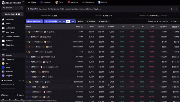 ✜ Większość nowych monet memów jest tam wprowadzanych na rynek, co daje możliwość śledzenia aktywności i znajdowania tokenów.