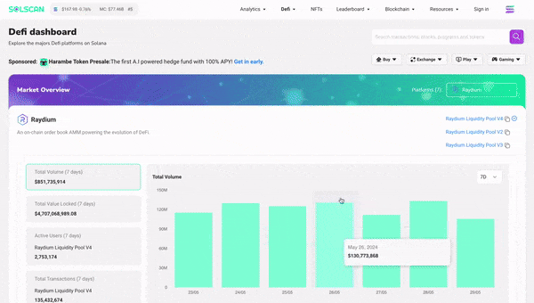 ✜ Ustaw filtr na „Token Swap” i zwróć uwagę na to, czym handluje się najczęściej - https://solscan.io/amm/raydium