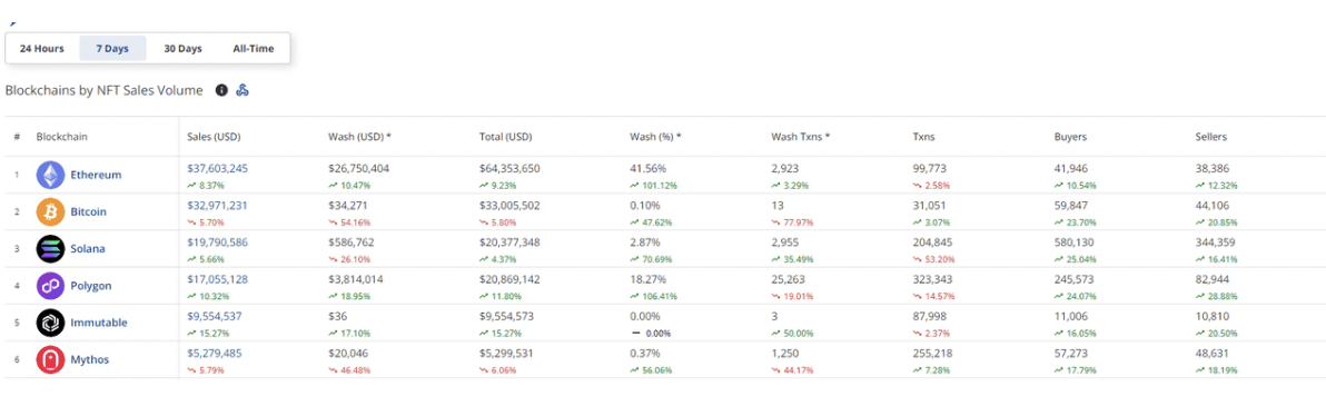 Według CryptoSlam, globalna sprzedaż NFT wyniosła 21 576 158 dolarów w ciągu ostatnich 24 godzin, co stanowi wzrost o 22,47% w porównaniu z poprzednim dniem, a łączna liczba transakcji wyniosła 216 052, co stanowi wzrost o 11,09%. Wolumen i liczba transakcji prania spadły odpowiednio o 9,64% i 7,68%, co świadczy o wzroście zapotrzebowania rynku na realne transakcje, przy jednoczesnym wzroście zysków handlowych o 11,09%.