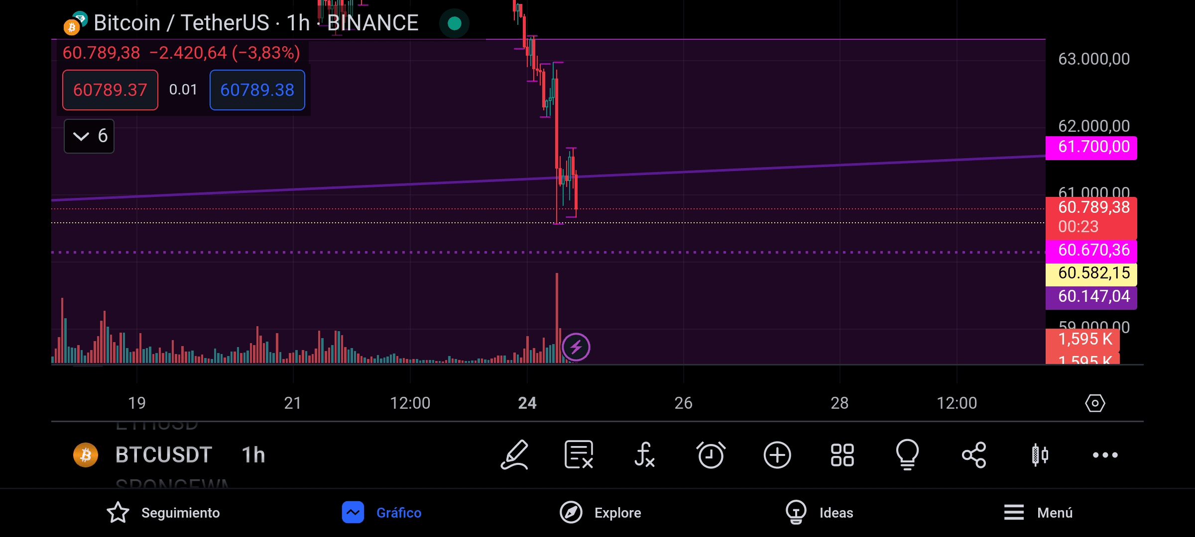 wygłupiaj się na 60 tys. jako wsparciu w strefie 60,5 tys., jak wspomniałem w poprzednim artykule, możliwe jest, że będzie szukał kwasu w dół, aby wyeliminować długie kontrakty.