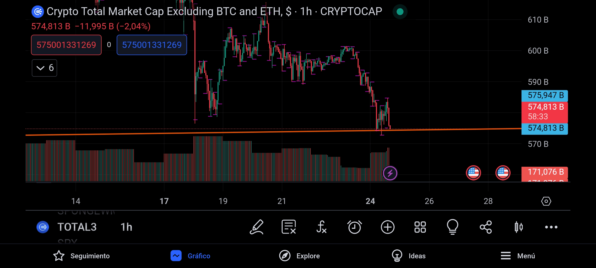 Warto jednak zaznaczyć, że TOTAL 3 (rynek kryptowalut bez BTC) testuje bardzo ważną strefę, która z pewnością w nadchodzących dniach mocno się przełamie.