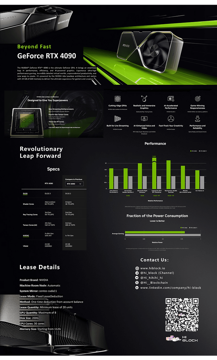 Visão geral do produto Nvidia GeForce RTX 4090: O serviço completo de poder de computação lançado desta vez usará a mais recente placa gráfica GeForce RTX 4090 da Nvidia. A GeForce RTX 4090 é uma das GPUs de consumo mais poderosas do mercado atualmente, usando a mais recente arquitetura NVIDIA Ada Lovelace, com até 16384 núcleos CUDA, equipada com 24 GB de memória GDDR6X e suporta tecnologias avançadas como ray tracing e deep superamostragem de aprendizagem (DLSS). Seu poderoso poder de computação e desempenho de processamento gráfico podem atender às necessidades de computação mais exigentes e são ideais para treinamento de IA, computação científica e desenvolvimento de jogos de última geração.