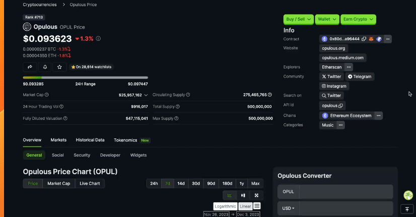 Valor de mercado: US$ 26 milhões Opulous é a plataforma líder para RWA na indústria musical, alimentada pela tecnologia blockchain. Sua missão é oferecer à comunidade os melhores produtos e oportunidades para participar de um dos RWAs mais confiáveis: a música.