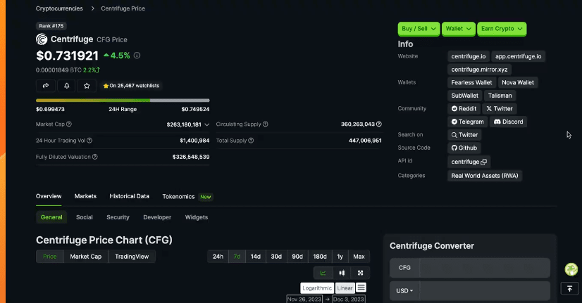 Capitalização de mercado: Centrífuga de US$ 263 milhões conecta DeFi com RWA, com o objetivo de reduzir o custo de capital para PMEs e oferecer aos investidores uma fonte estável de renda. O objetivo principal do projeto é gerar lucros independentes de ativos criptográficos voláteis.