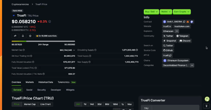 Capitalização de mercado: US$ 63 milhões TrueFi é o protocolo de crédito da DeFi, oferecendo aos credores rendimentos previsíveis e transparentes em empréstimos do mundo real e cripto-nativos. Permite a criação de pools remunerados com TAEG elevadas, beneficiando os fornecedores de liquidez.