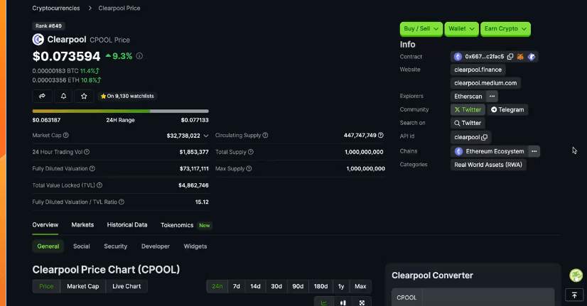 Valor de mercado: US$ 32 milhões Clearpool é uma plataforma que permite que mutuários institucionais acessem empréstimos sem garantia diretamente do ecossistema DeFi. Introduziram um modelo de juros dinâmico que é influenciado pelas forças da oferta e da procura do mercado.