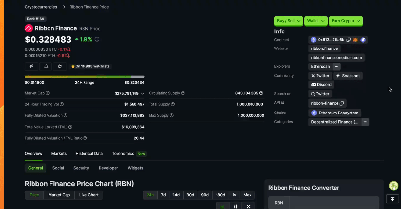 Valor de mercado: US$ 275 milhões A Ribbon aproveita a engenharia financeira para criar produtos estruturados que geram um rendimento sustentável. O protocolo também permite que os desenvolvedores criem produtos estruturados personalizados, combinando diferentes derivados DeFi.