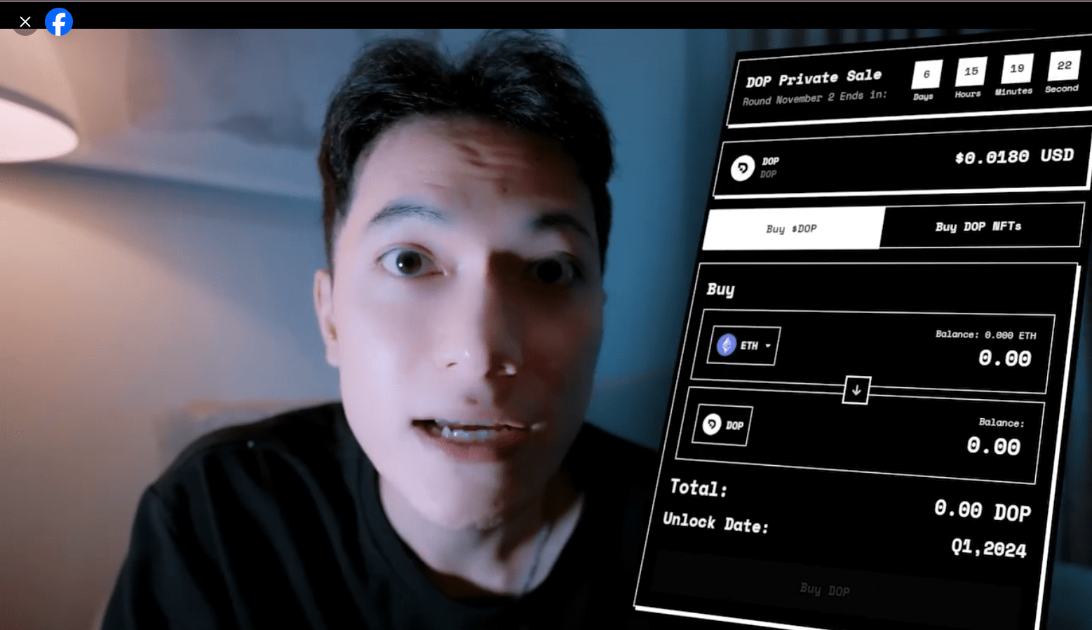 O preço de pré-venda teve várias rodadas começando de 0,01 até a rodada final de 0,089 por token. Ele continuou a promover essas rodadas de venda de tokens e continuou a ganhar uma quantia de comissão da equipe DOP (aproximadamente 100-150ETH em troca).