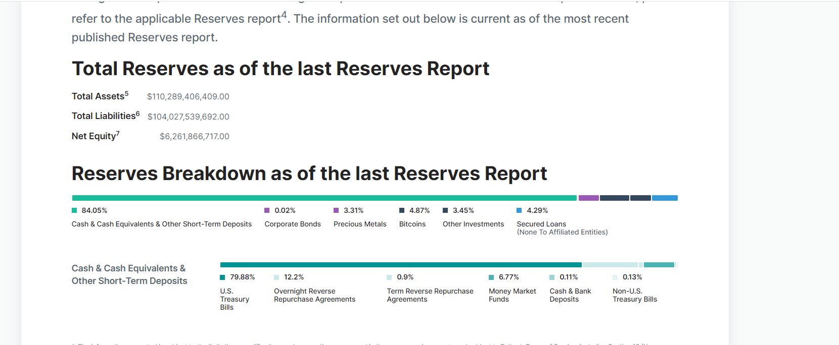 Tether não aceita responsabilidade se o relatório de reserva em seu site não for preciso por qualquer motivo.