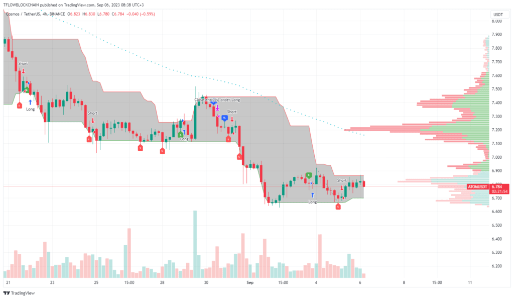 ATOM está em modo curto após fechar a posição longa anterior.
