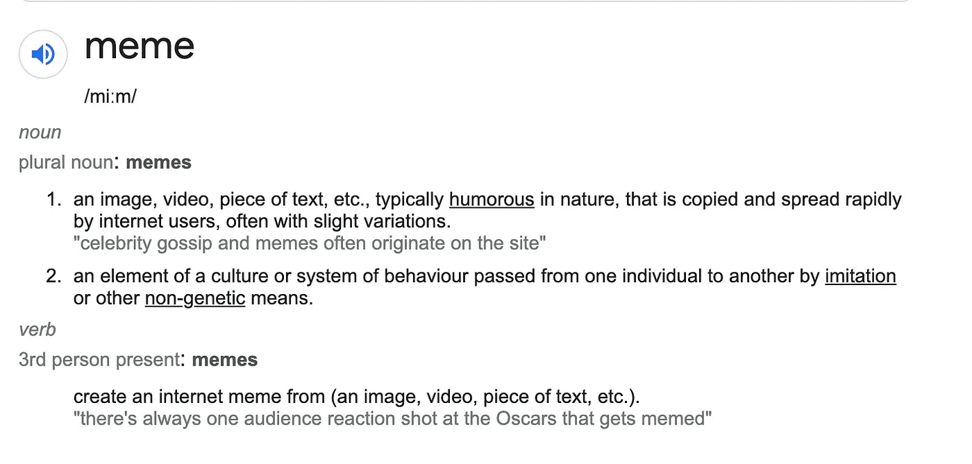 A seguir, o que exatamente são Memes? Aqui está uma definição de dicionário: