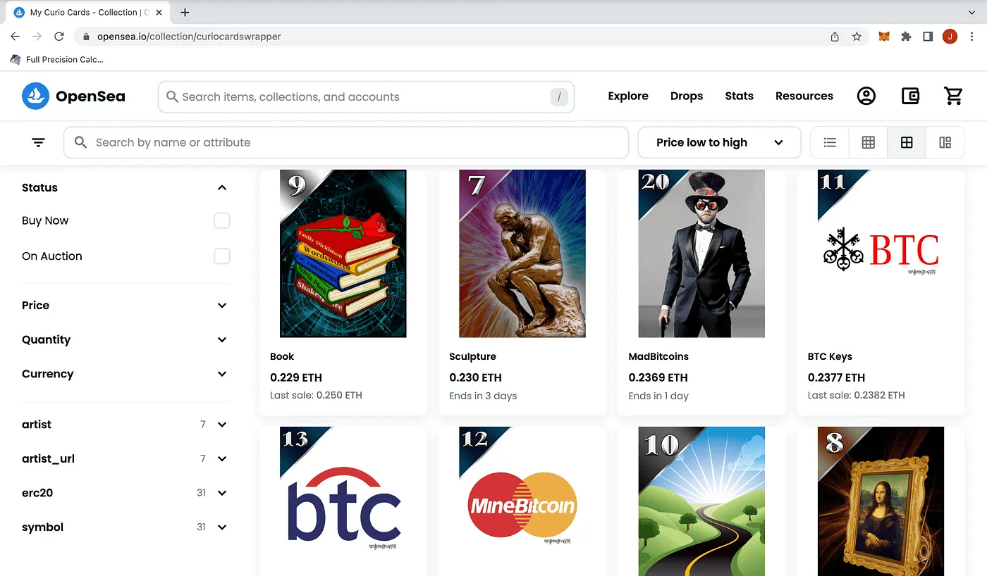 A história é um fator, embora em menor grau, porque Curio Cards foi o primeiro “cartão” a ser lançado na blockchain ETH e, tecnicamente, deveria ser o equivalente aos Pepe Cards na blockchain Bitcoin (BTC).