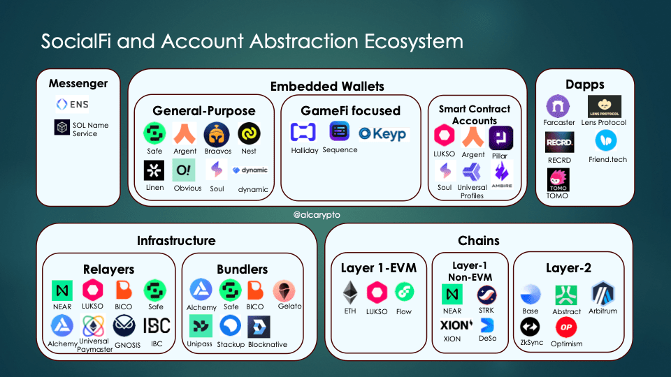 Smart Contract Account Solutions será a camada fundamental, transparente e segura do SocialFi. A abordagem da LUKSO com Universal Profiles, a solução de escalonamento Layer-2 da Abstract e o XION abordam essas questões ao fornecer uma solução mais integrada e flexível para identidade e interação do usuário em todo o ecossistema de blockchain, diferenciando ambos do Lens Protocol e do Farcaster.
