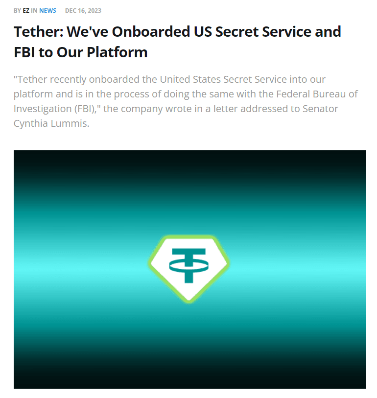 A Tether integrou o FBI e o serviço secreto dos EUA em sua plataforma.
