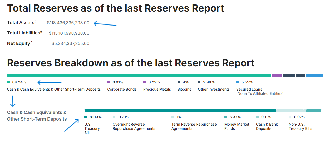O Tether mudou sua redação. Anteriormente, o USDT era "lastreado 1-1 pelo USD". Agora, ele é lastreado pelas reservas do Tether, 81% das quais são mantidas em dívida dos EUA.