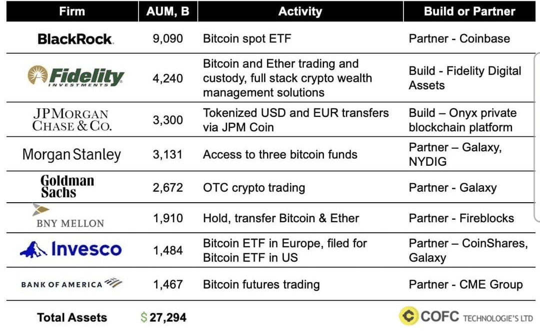 Aleksey Daniel Danilovich, fundador da COFC Technologies Ltd, uma empresa de blockchain bem estabelecida e renomada, acredita que a entrada de empresas líderes em gestão de ativos, gerenciando coletivamente quase US$ 27 trilhões em fundos e ativos, impulsionará a nova era de métodos de pagamento digital descentralizados para o mainstream. Isso, por sua vez, encorajará milhões de novos usuários a se juntarem à revolução financeira.