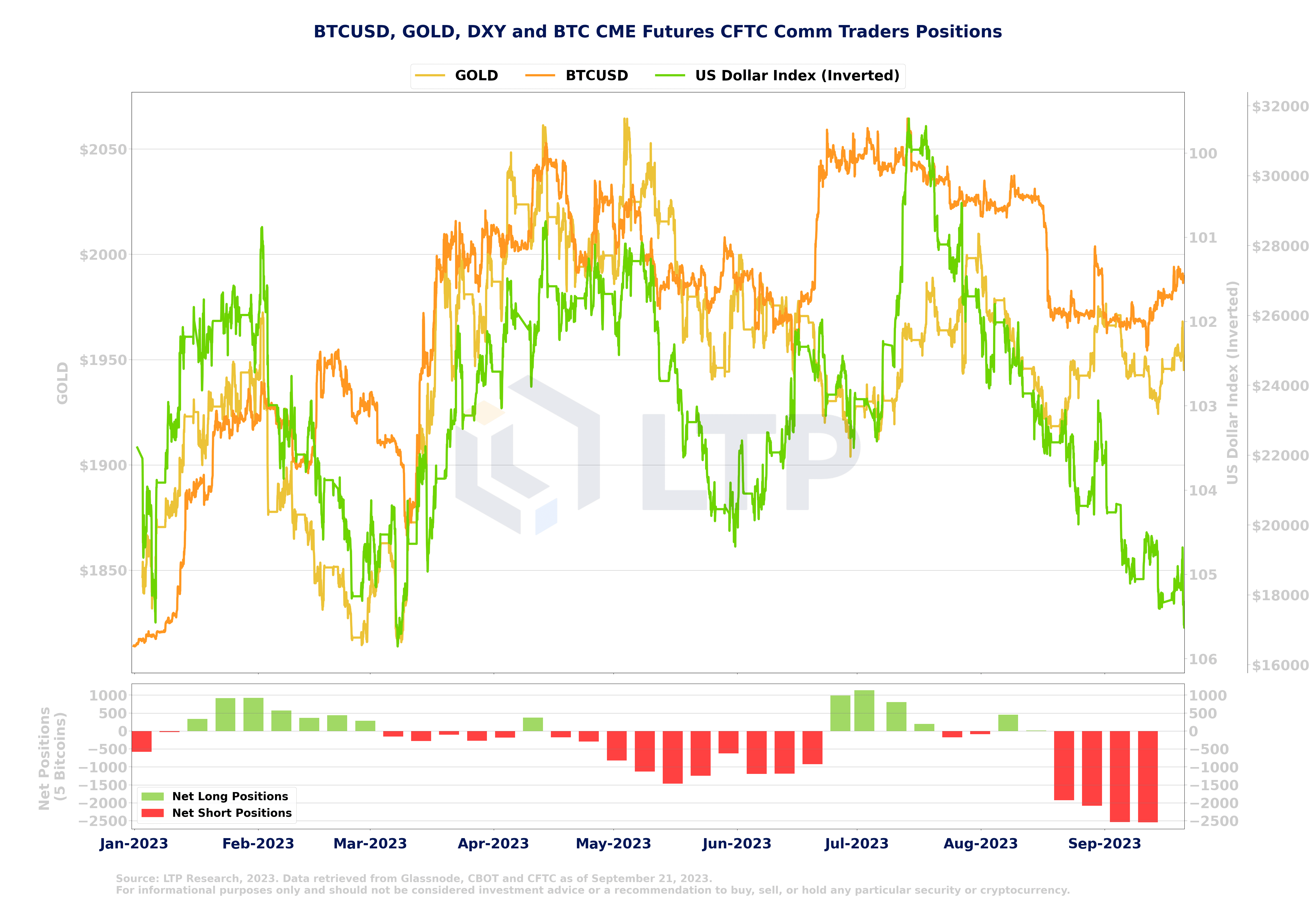 O rendimento dos títulos do Tesouro de 10 anos tem aumentado de forma constante nos últimos meses, atingindo uma alta anual em 2023 em 4,37%, superando seu pico anterior de 4,25% definido em novembro de 2022. Este é o nível mais alto desde a Grande Crise Financeira de 2008. Apesar do aumento nos rendimentos, o último relatório do Commitment of Traders (COT) mostra que os gestores de ativos estão mantendo uma posição longa em títulos de 10 anos. O Índice de Probabilidade de Recessão do Fed dos EUA e Filadélfia indica uma probabilidade de 34% de ocorrência de uma recessão no próximo ano. O título longo está atualmente superlotado, com os investidores antecipando uma potencial recessão que poderia forçar o Federal Reserve a cortar as taxas de juros. No entanto, o presidente do Federal Reserve, Jerome Powell, enfatizou que seu objetivo principal é planejar um pouso suave.