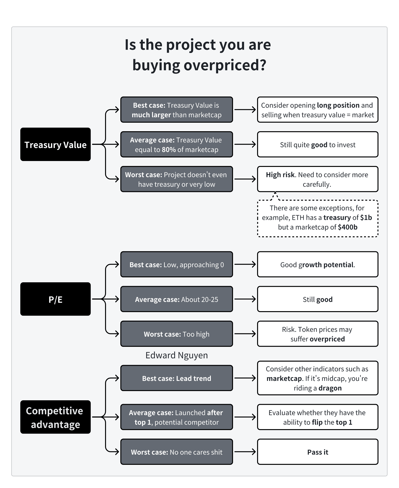 P/E significa a relação entre o preço atual de uma ação e seu lucro por ação. Para criptografia, ações da empresa = tokens. O lucro será a taxa gerada pelo produto e Dapp do projeto.